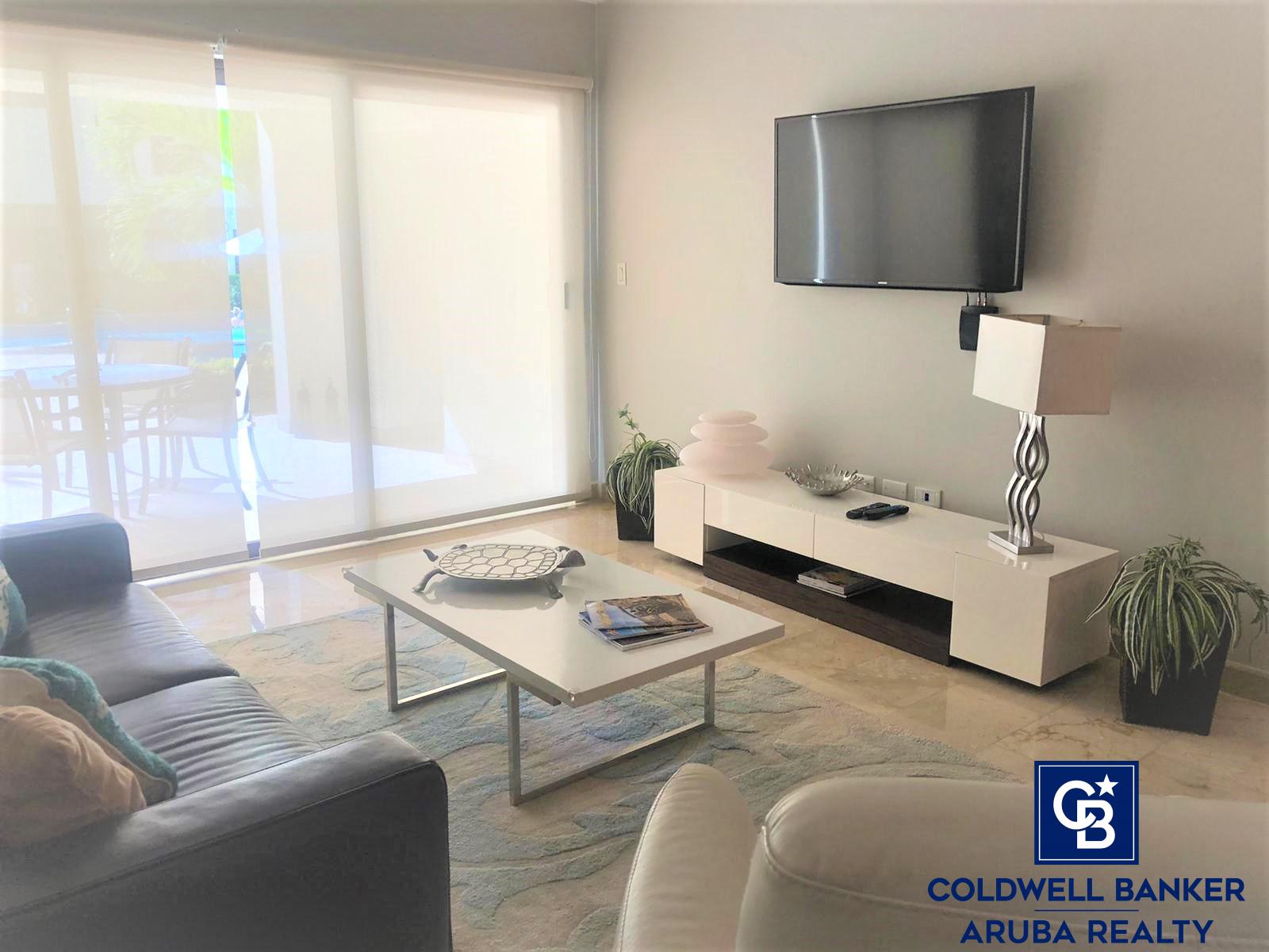 This beautiful 2 bedroom/2 bathroom condo is located in the gated community of Palmaruba in Palm Beach with the Hotels, Beach, restaurants and shopping all nearby.Completely furnished unit with very upscale furnishings, modern kitchen with all appliances, washer/dryer. The elevator will take you up to the 4th floor. Amazing views of the hotels in the distance from the large balcony of the unit. Pool area, gym, tennis court, outdoor cooking station and tables/chairs. Storage unit in the hallway.Price is excluding water, electricity and gas.No pets allowed. Call Soraida for more information on rentals.